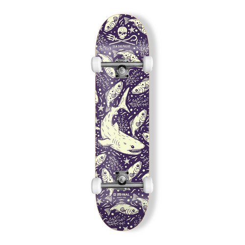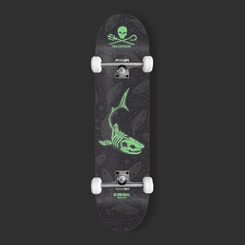 A foreboding collaboration with Sea Shepherd and Sunshine Coast Skateboard Company Eternal Skateboards – This decks bears a unique glow-in-the-dark Great White Shark Graphic.